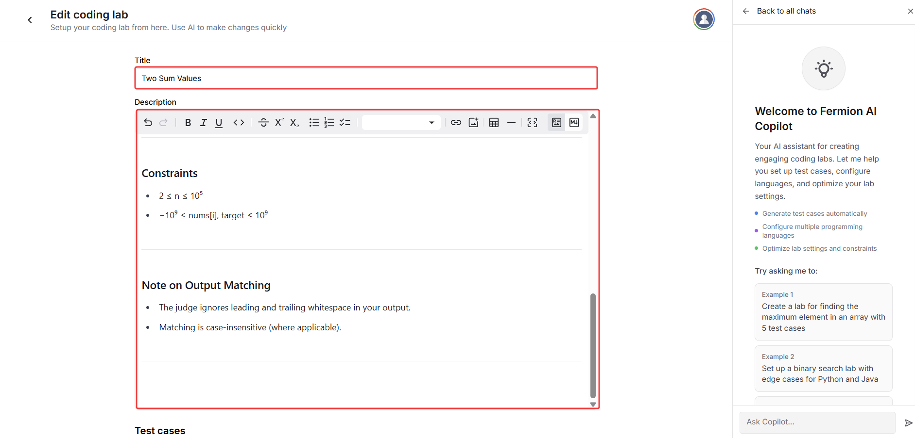 Next, add a title and description for your lab. You can also use Fermion Copilot to help build your lab.