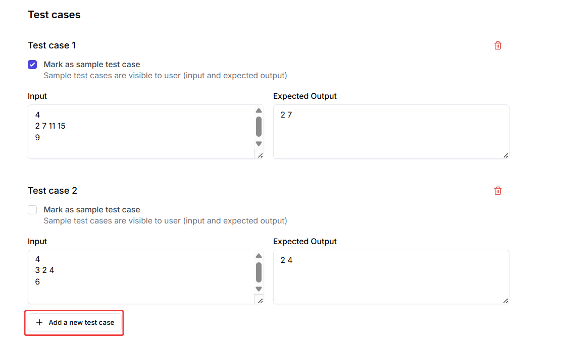 You can include sample test cases as well, which will be visible to the users attempting the lab.